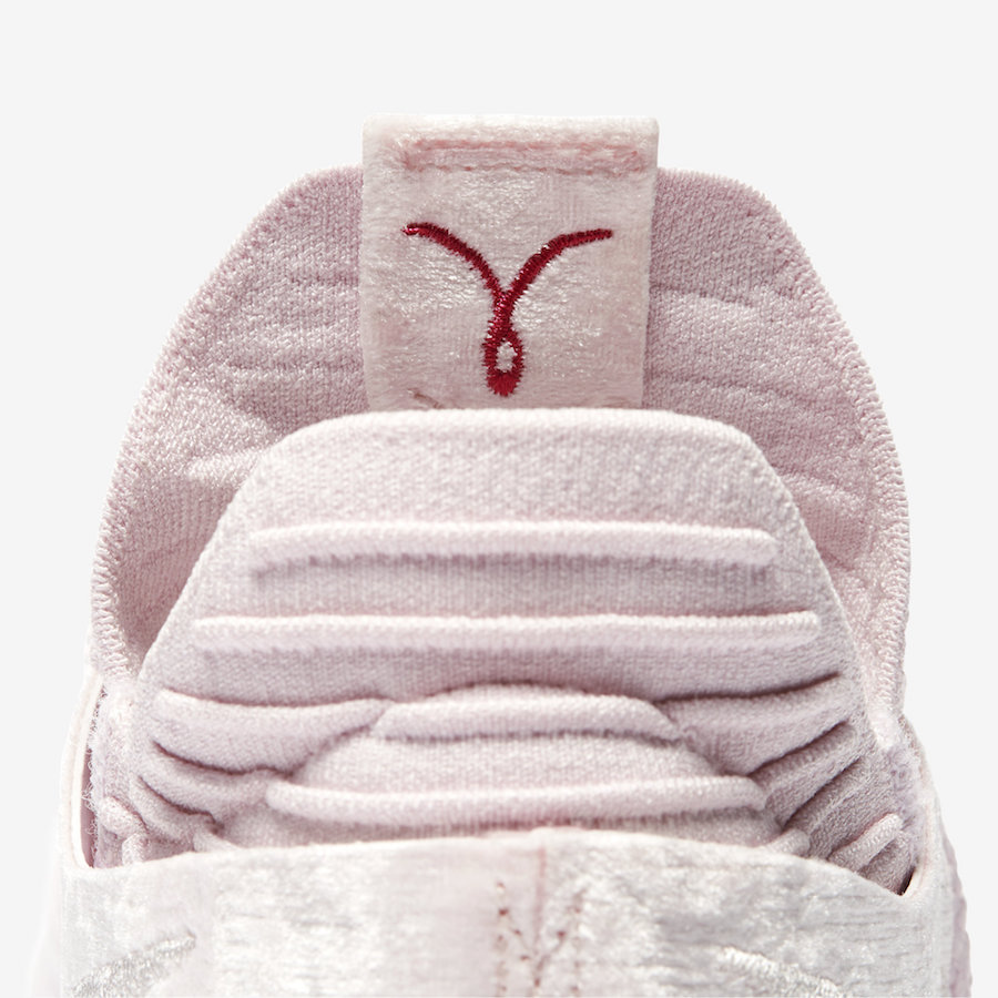 鞋款整体以浅粉色为主调,鞋身的支撑部位以翻毛皮材质打造,后跟部位使用羽毛纹理点缀,鞋舌内侧有红色的抗乳腺癌刺绣标志,延续粉色经典的同时还拥有丰富细节!