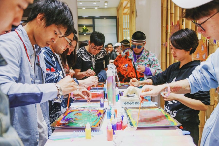 近日的侯丽节配色 Hu NMD 可谓席卷了球鞋圈的每个角落,多样的色彩搭配也让 Hu NMD 在鞋圈有着举足轻重的地位! 此番,adidas Originals 将侯丽节的氛围带到了成都 Juice 店铺内。活动现场不仅被烟尘般绚烂的色彩装点一新,更为到场的来宾带来了多种源于印度的独特体验。 活动限定的腕带、印度图腾人体彩绘、印度特邀 DJ 表演等多种活动,都一次次将现场氛围推至高潮,让在场的人们都仿佛置身异域风情当中!