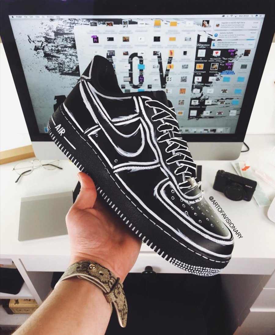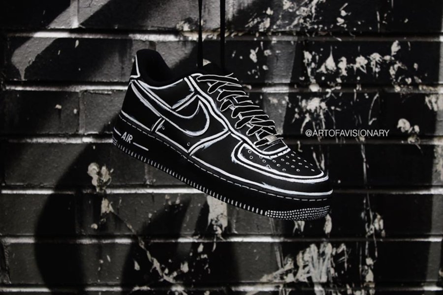来自英国的定制团队 A.O.V 将当下火爆的二次元球鞋反转,黑色为底,白色潦草勾勒轮廓,视觉冲击更为强烈,喜欢小黑鞋的朋友不妨自己也动手来一发。