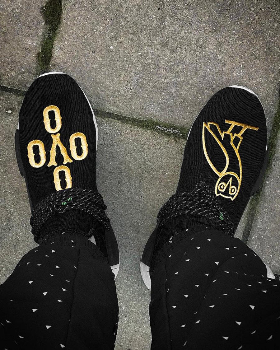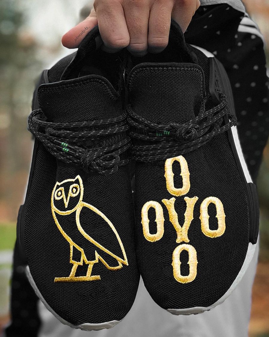 率先带来 OVO x adidas Originals Hu NMD 的定制球鞋,基于 adidas 鞋型之上的黑金猫头鹰,没毛病!