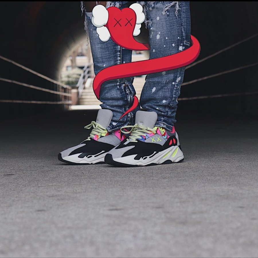 荧光色系的涂鸦细节与 KAWS 标志性的 XX 点缀,上脚毫无违和。