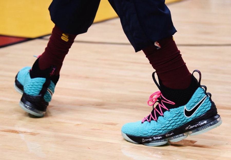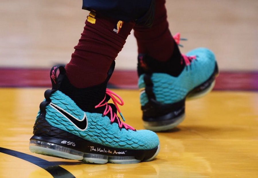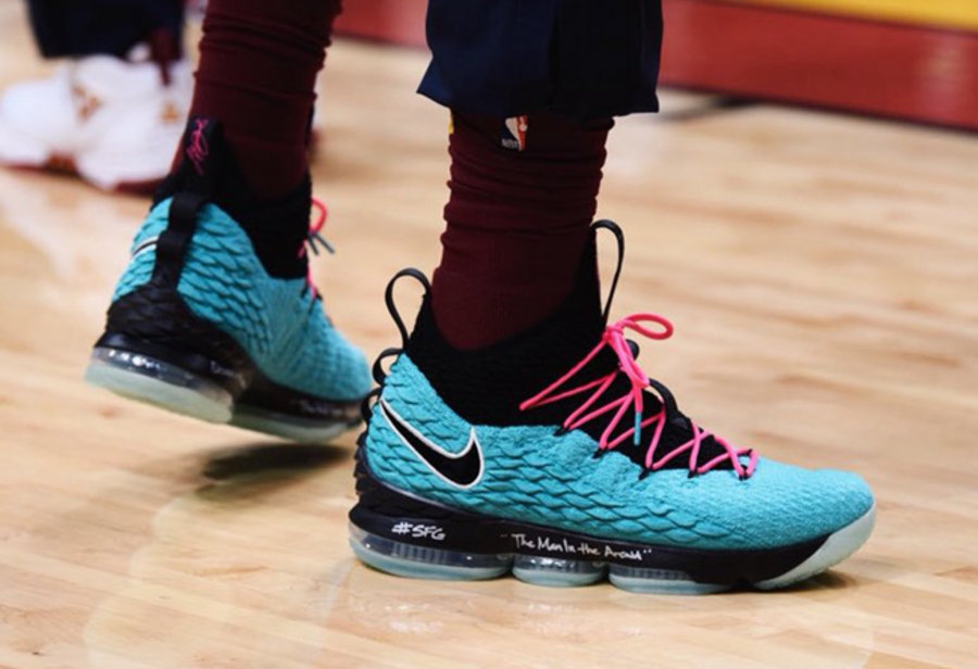 今天詹皇重返迈阿密迎战热火,上脚一双 LeBron 15 南海岸配色着实让人惊艳。 配色方案完美还原经典的 LeBron 8 “South Beach”,湖蓝色编织鞋面搭配粉色鞋带,后跟外侧添加黑色刺绣 Swoosh Logo,更加还原 LeBron 8 造型,鞋提和鞋垫也有粉色点缀呼应主题。 遗憾的是这双鞋目前为詹皇专属,暂无发售计划释出,后续信息我们将持续关注。 pic via:sneakerbardetroit