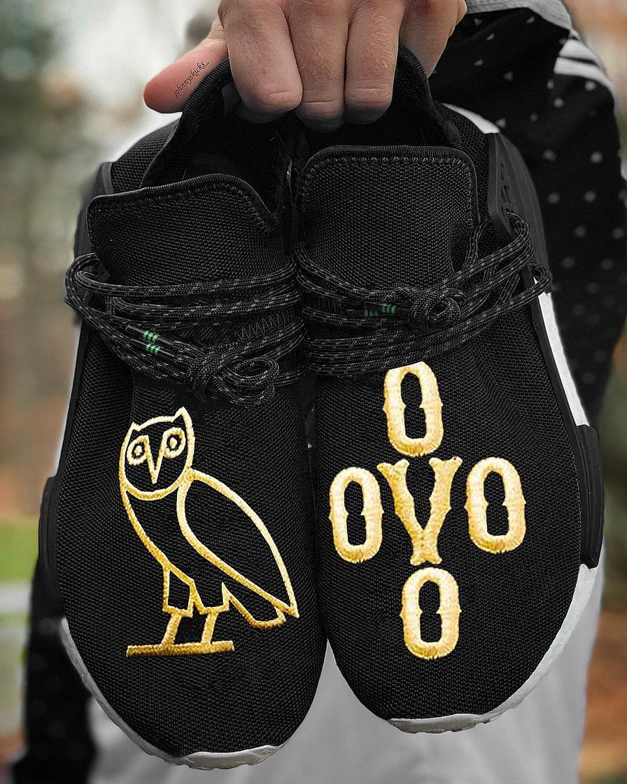 而脑洞大开的网友早已按耐不住创作的思绪,“设计” 出了 OVO x adidas Originals Hu NMD 的假想图,甚至已经把这个黑金猫头鹰配色做出来了!