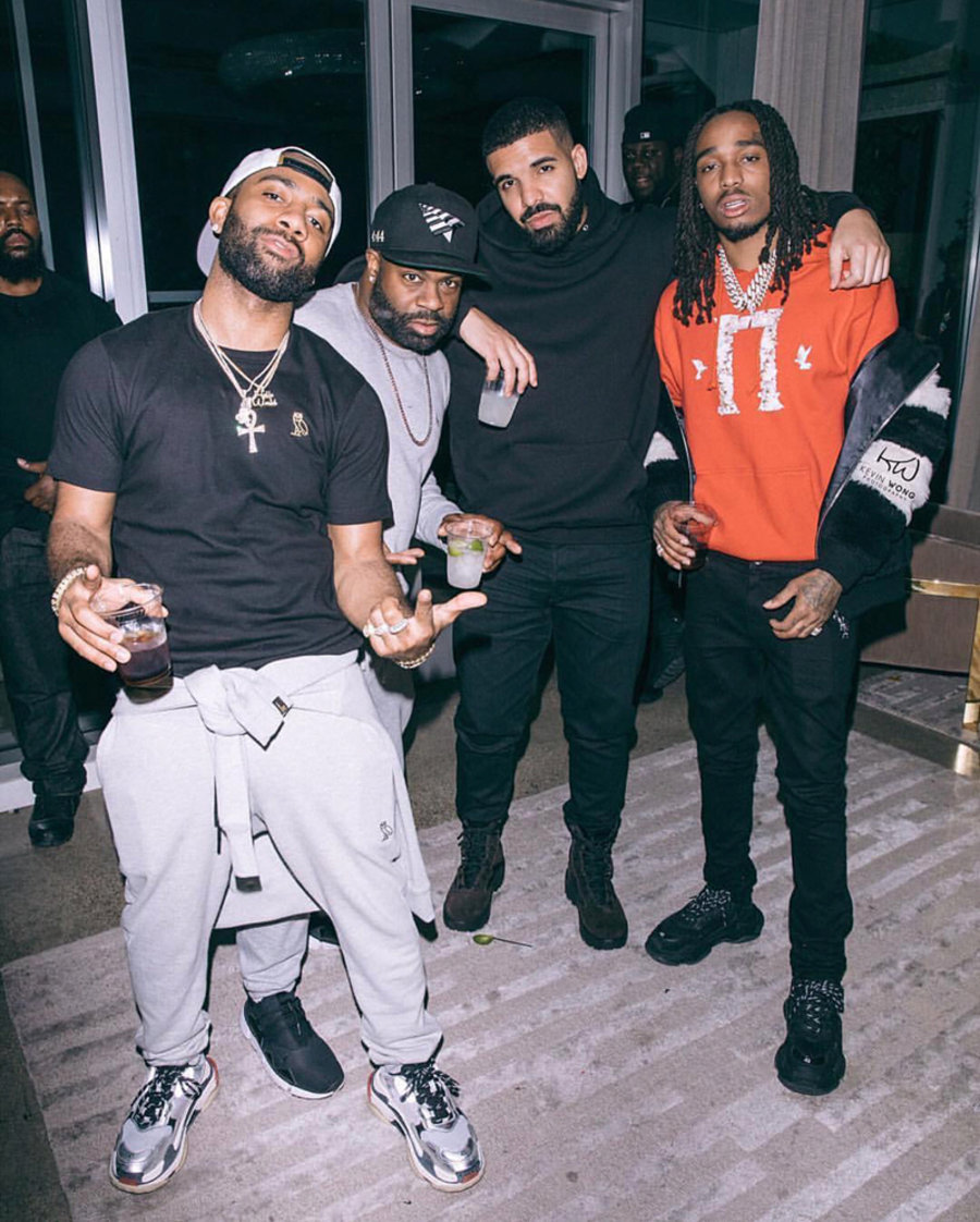 月初 ins 上曝光 Drake 出席活动已换上 Yeezy SEASON 4 Combat Boots,近日自己再度晒出与好友在私人飞机上的照片,除了手中夸张的饮料外,醒目的三叶草经典长裤更让人浮想是否已与 adidas 携手,就待官宣了?
