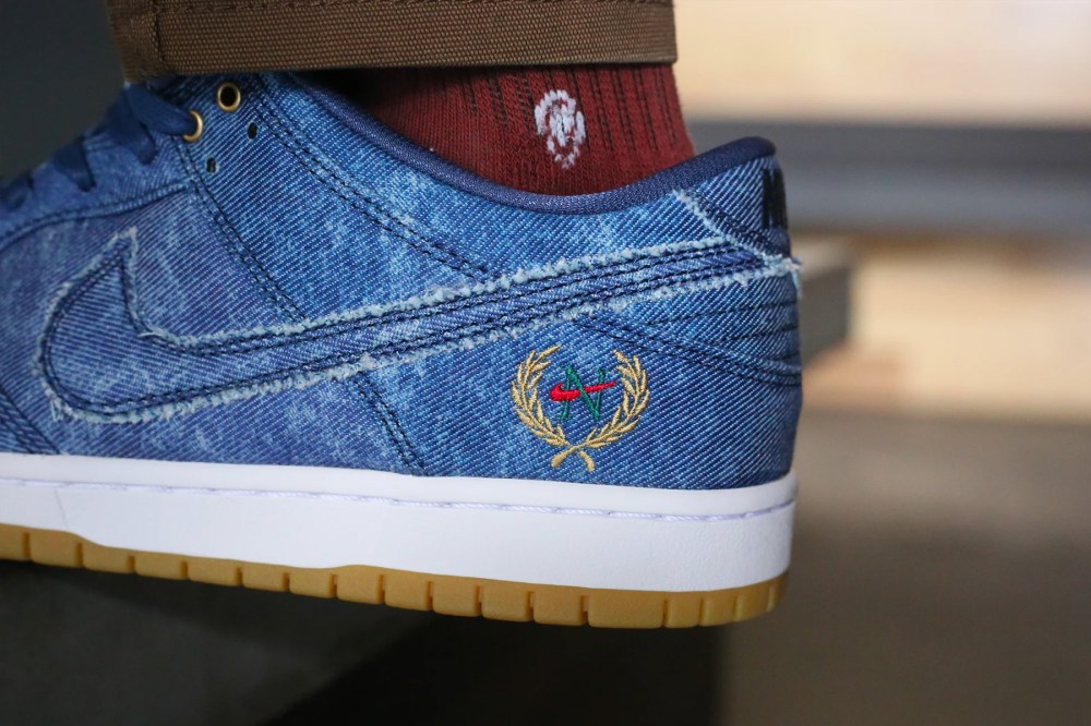 此次 Nike SB Biggie vs. Tupac 系列亮点十足,Biggie 以 Nike Dunk Low 为蓝本,使用浅蓝色牛仔布覆盖鞋面,而 Tupac 则以 Nike Air Force 2 为蓝本,以深蓝色牛仔布打造,内衬点缀 Tupac 佩戴的头巾图案。
