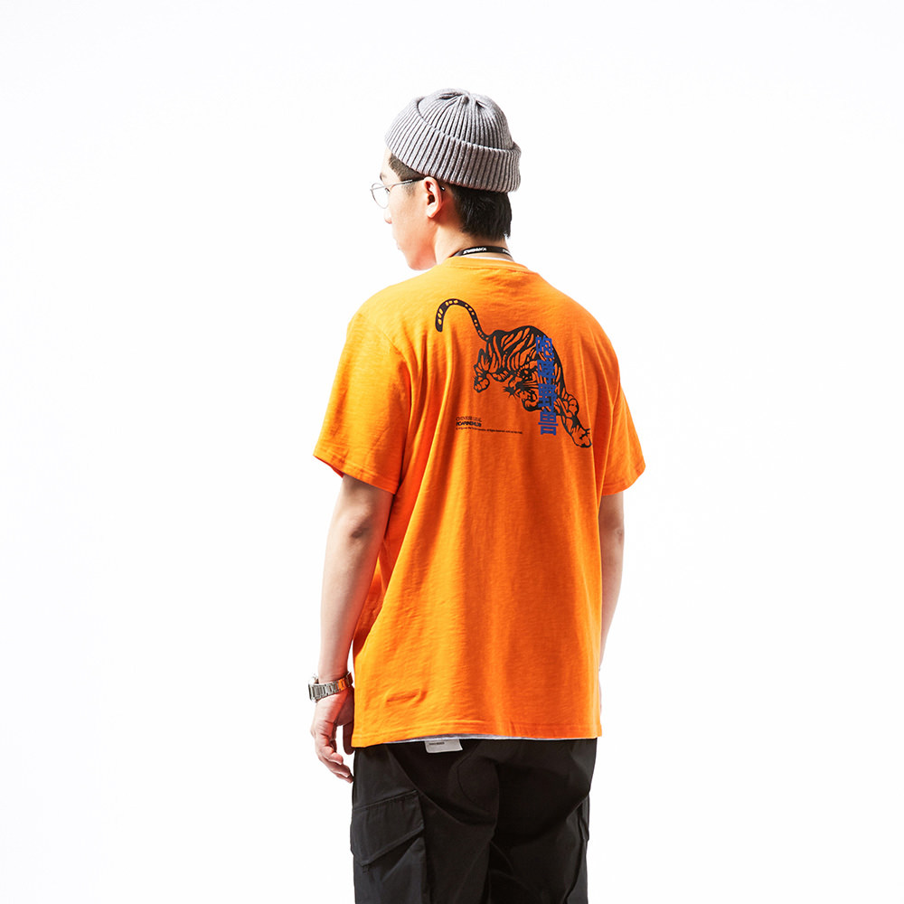 ROARINGWILD 橙色抽象图腾竹节棉T恤