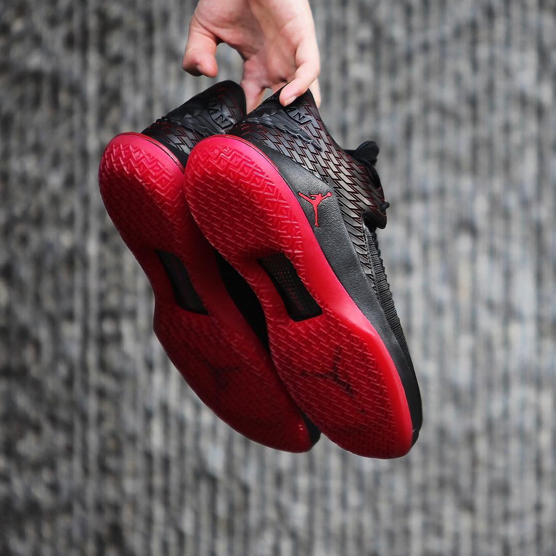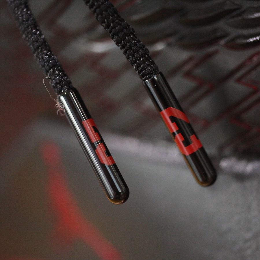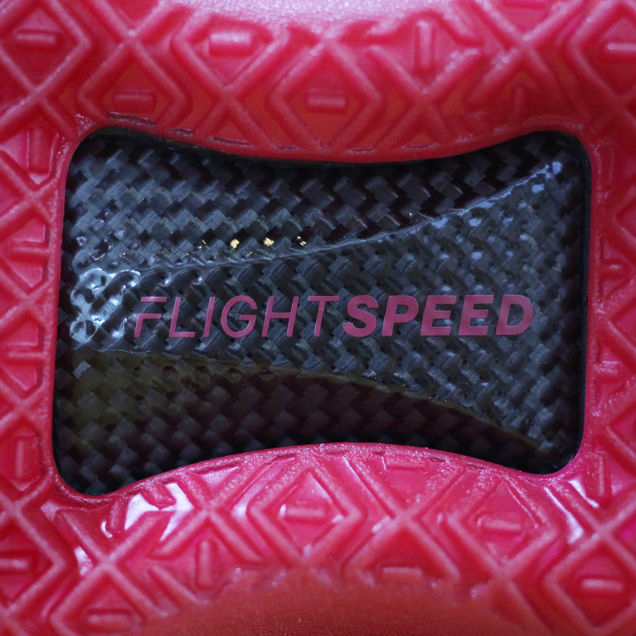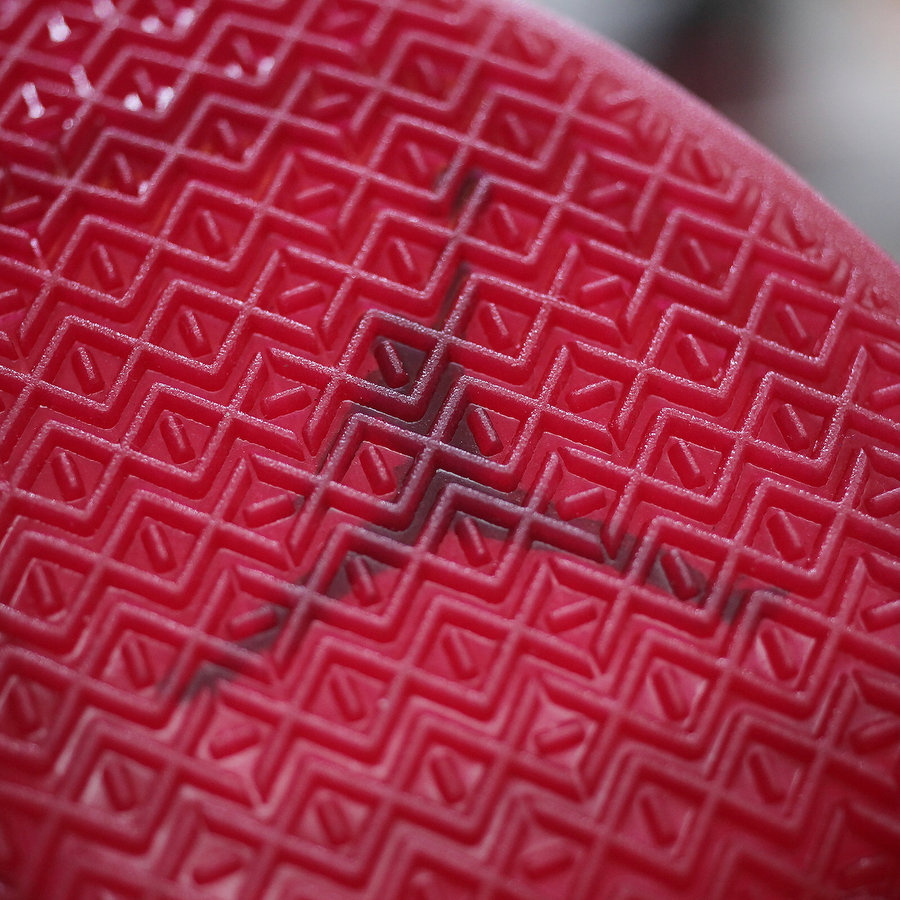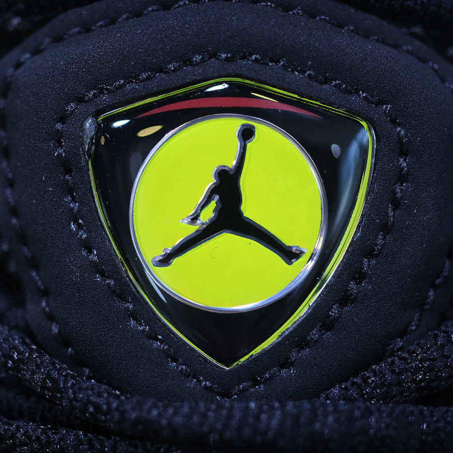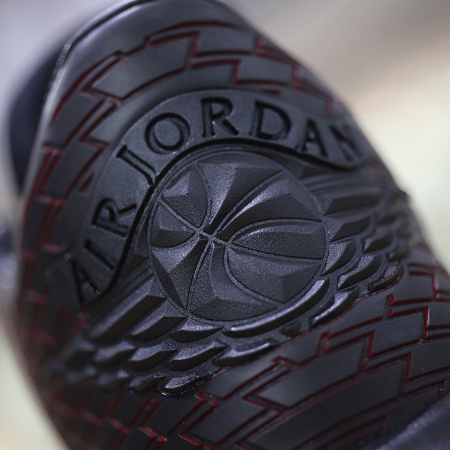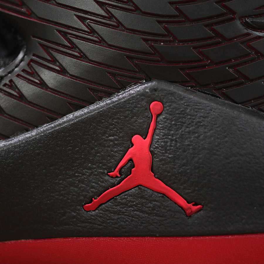 同当年飞人脚下那双黑红 AJ14 如出一辙,鞋舌的法拉利标志与金属红细节致敬意味浓厚!后跟硕大的飞翼 Logo 与橡胶材质的翅膀纹理极具杀气,绝对是当今球场上的狠角色!