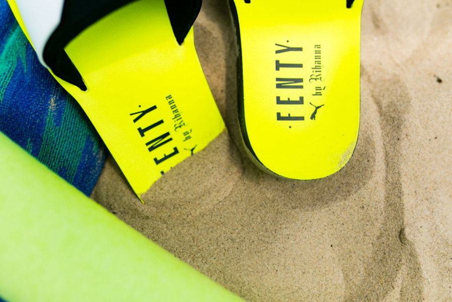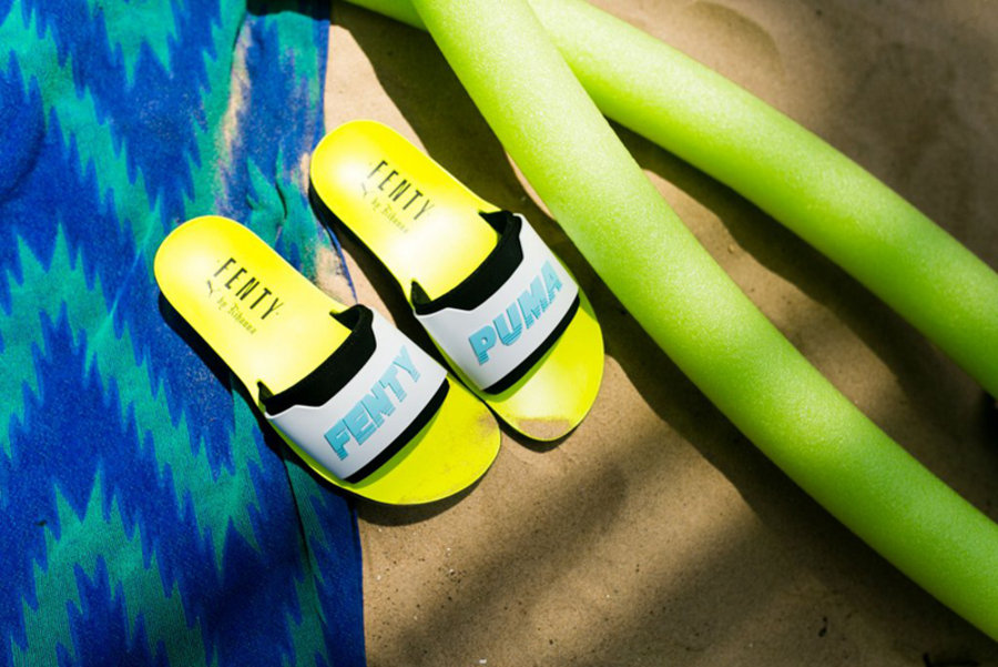 蕾哈娜全新联名拖鞋 Rihanna x PUMA Fenty Surf Slides 登场。 中底为清爽的柠檬黄色,绑带为黑白双层设计,双脚分别为浅蓝色 “FENTY” 和 “PUMA” 字体,与以往 PUMA 风格有所改变。外底为黑色橡胶材质,增强防滑性。喜欢清爽拖鞋的女生又有了新选择。 现已于海外发售,售价 $80 美元,喜欢的朋友可以尝试海淘入手。 pic via:rockcitykicks