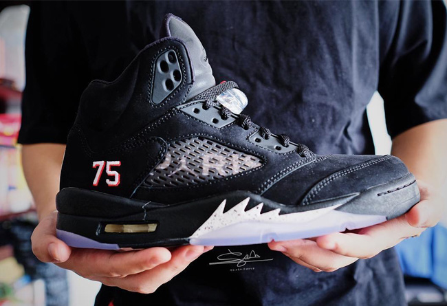 继内马尔与 Jordan Brand 合作推出 AJ5 Low 后,此前一双含有巴黎圣日耳曼球队标志的黑色 AJ5 浮现网络,再度引发鞋迷关注!