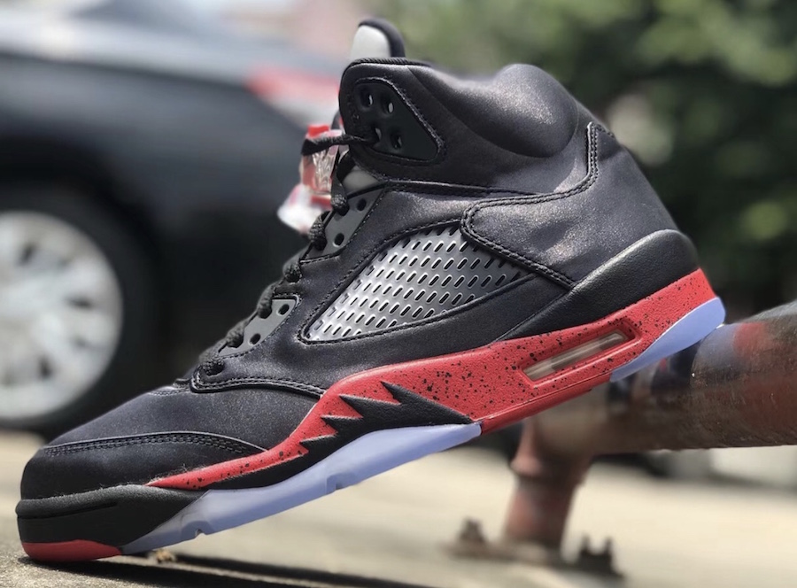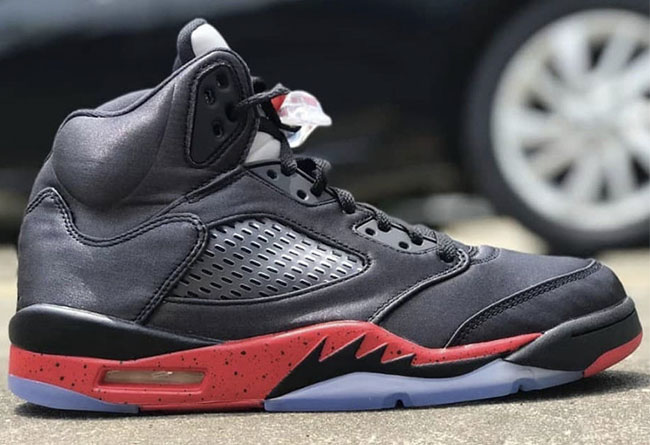 此前传闻今年将要发售的黑红 Air Jordan 5 "Bred" 也终于亮相真身,不同于以往的皮革材质,改用光滑的丝绸打造,别有一番格调!