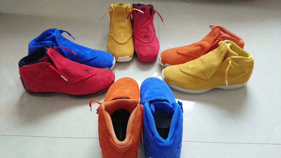 看来 AJ18 要走上 “葫芦娃” 的不归路,近期亮相多款麂皮配色,为这双极具纪念意义的鞋款注入更多时尚元素!