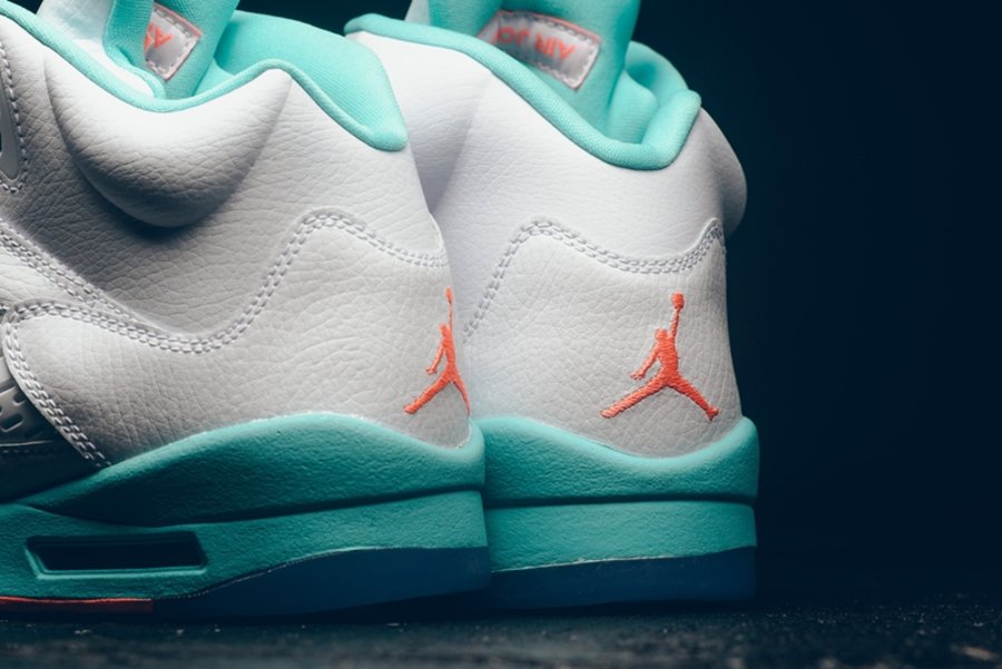 5 代鞋型向来深受妹子喜爱,本周一双专为女生打造的的全新配色 Air Jordan 5 “Light Aqua” 将在本周降临,一经曝光就关注度极高,带来最新上脚展示!