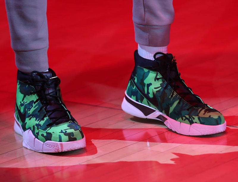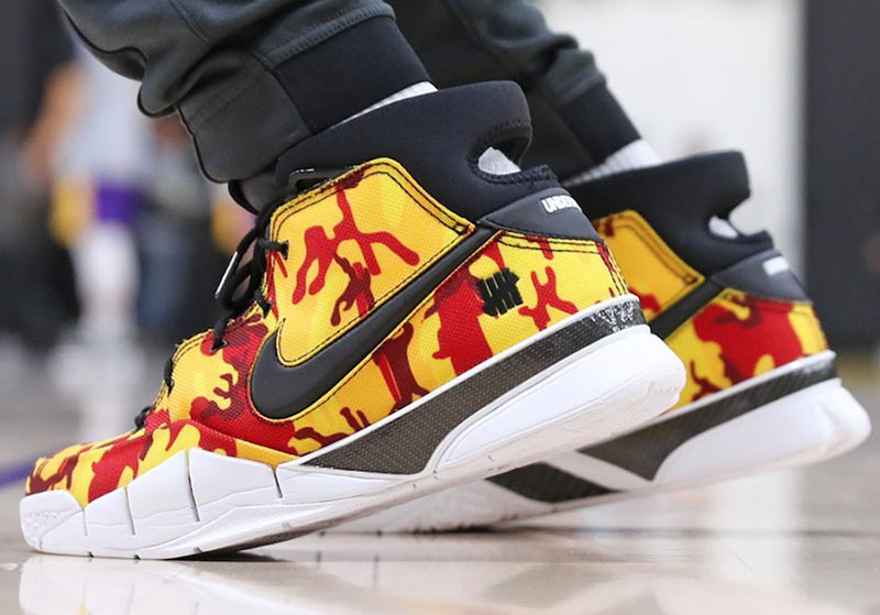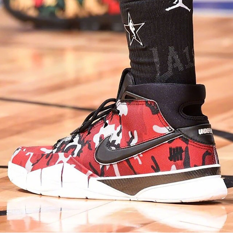 德罗赞上脚 UNDEFEATED x Kobe 1 Protro 红、绿迷彩鸳鸯