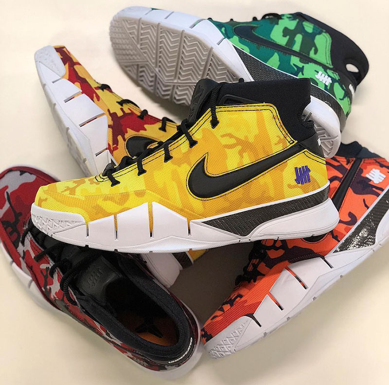 今日网络再度浮现这款稀有新品的静态实物,与之一同出现在画面中的,还有此前亮相的其他迷彩版本 UNDEFEATED x Kobe 1 Protro。