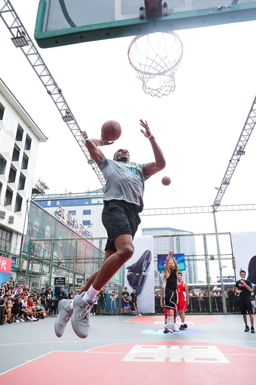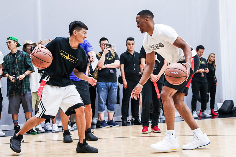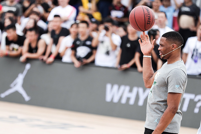 此次在北京,威少不仅出席 “Why Not? 北京” 艺术展和展翅飞翔(JORDAN WINGS)项目,他还作为评委现身 “NBA 5v5” 北京站的 Jordan 扣篮大赛现场,并在拥有“中国街球圣地”之称的东单篮球公园,威斯布鲁克带领四位 “徒弟” 与国内街球精英一较高下。