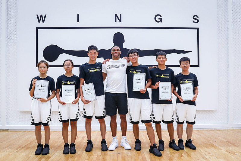 在展翅飞翔 JORDAN WINGS 项目上,威斯布鲁克与已经高中毕业的 6 名第一季学员、12 名第二季的小朋友及学校代表一起,