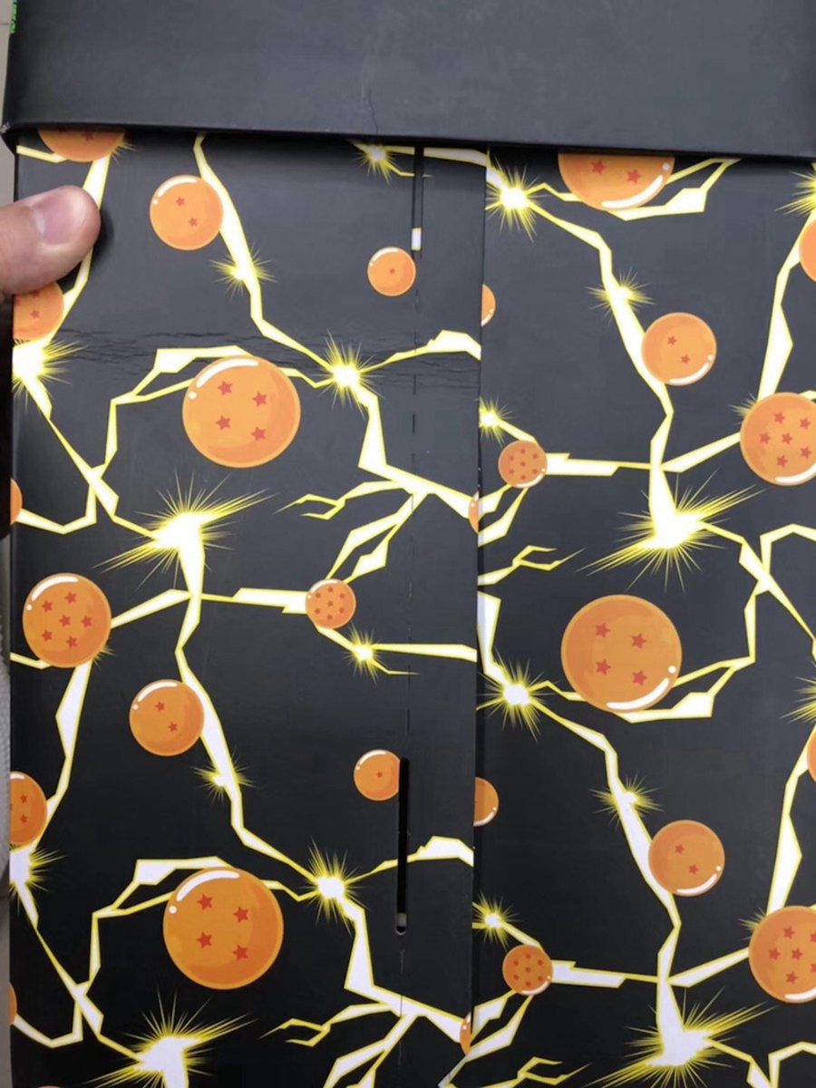 鞋盒还模仿漫画书,侧面有可拼接的图画设计,集齐七款有惊喜。内层还有龙珠印花,再次点题。