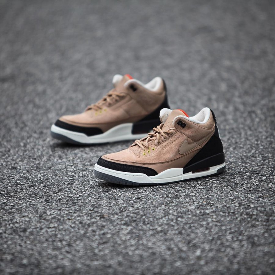 贾老板的 AJ3 JTH 也有质感更奢华的卡其配色登场。贾老板上脚的白水泥配色已经直逼 5000 元,这款新配色预售价格也已经过 2000 元。货号:AV6683-200