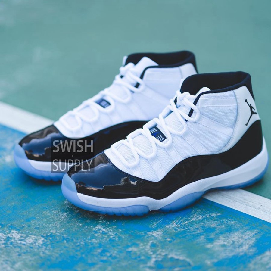 Air Jordan 11 “Concord” 纵观 AJ 全系列也是王者级别,经典无需赘言。更厉害的是今年是 45 号后跟版本 “Concord” 首次市售,除了穿着属性还有收藏价值。
