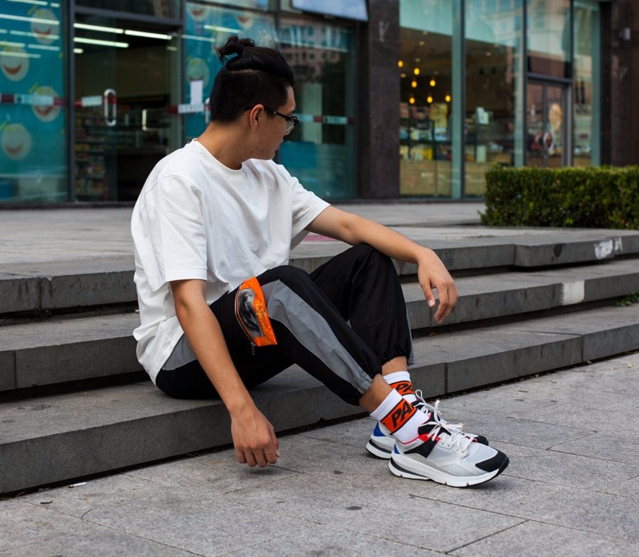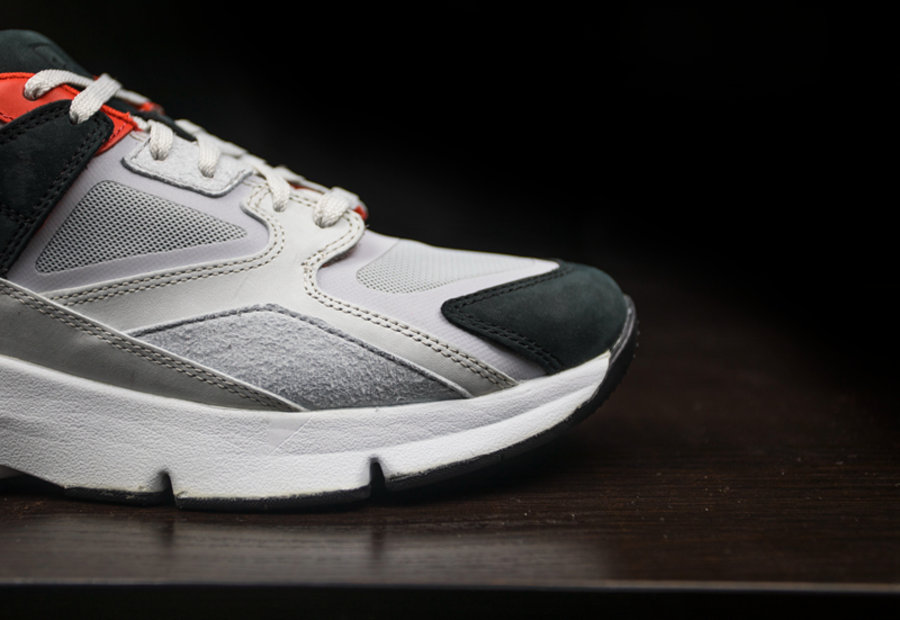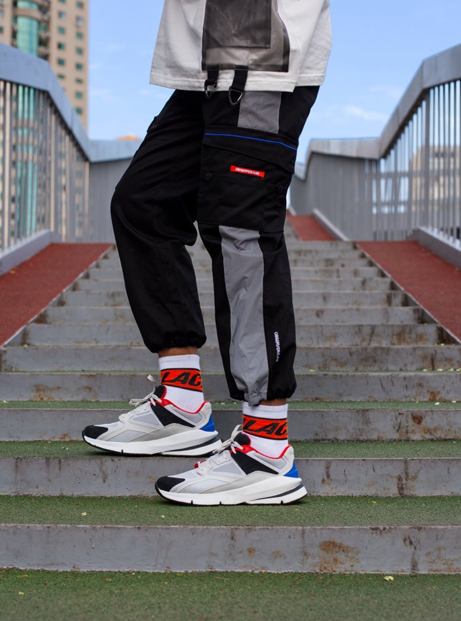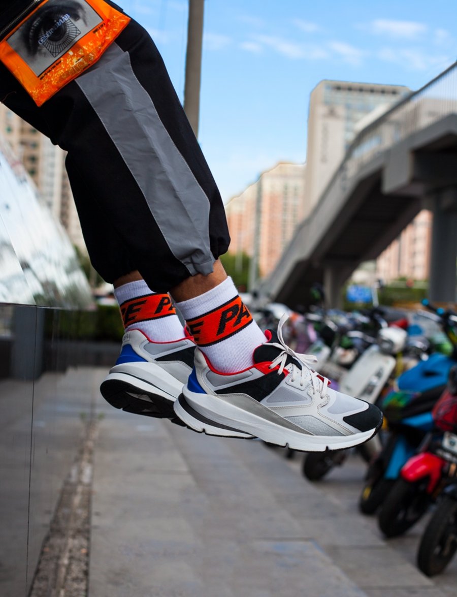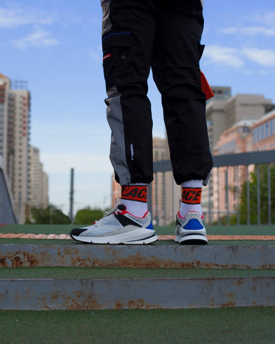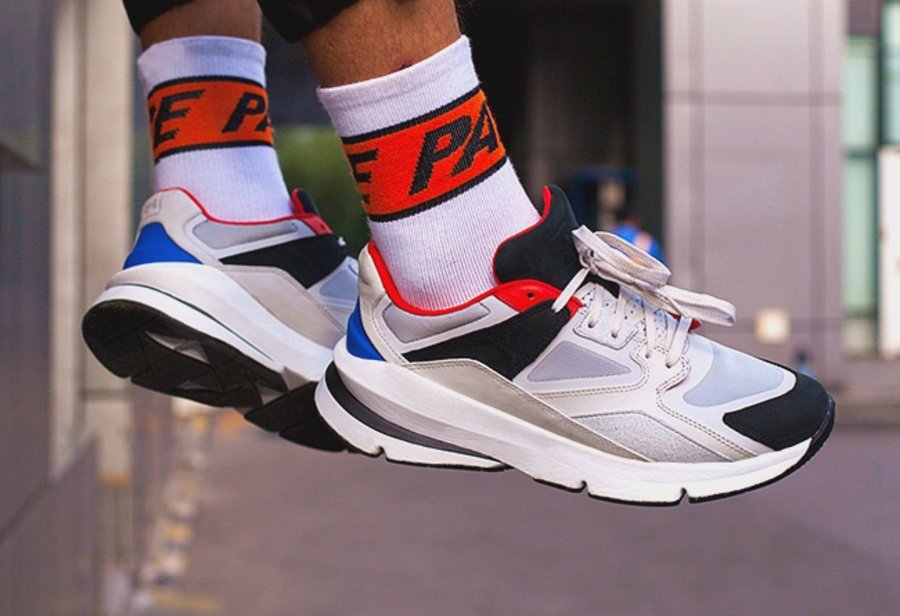 配色方面灰白主色搭配黑色和红蓝点缀,相当百搭又极具年代感。鞋身棱角分明,鞋面多处使用尖锐的三角形切割,带来大多数老爹鞋所没有的犀利气质。中底线条也相当流畅,以简单的线条带来丰富的层次感。