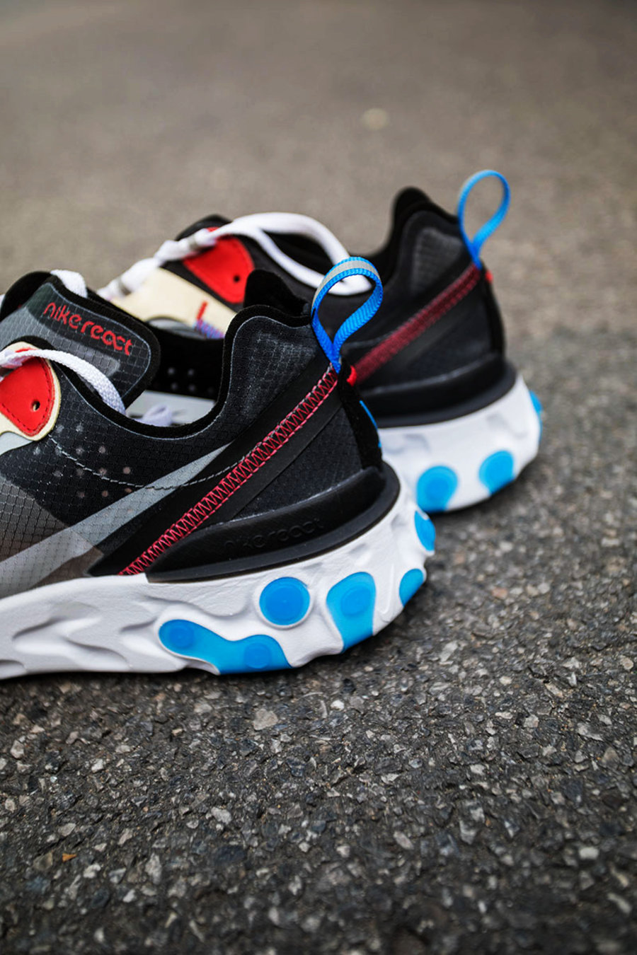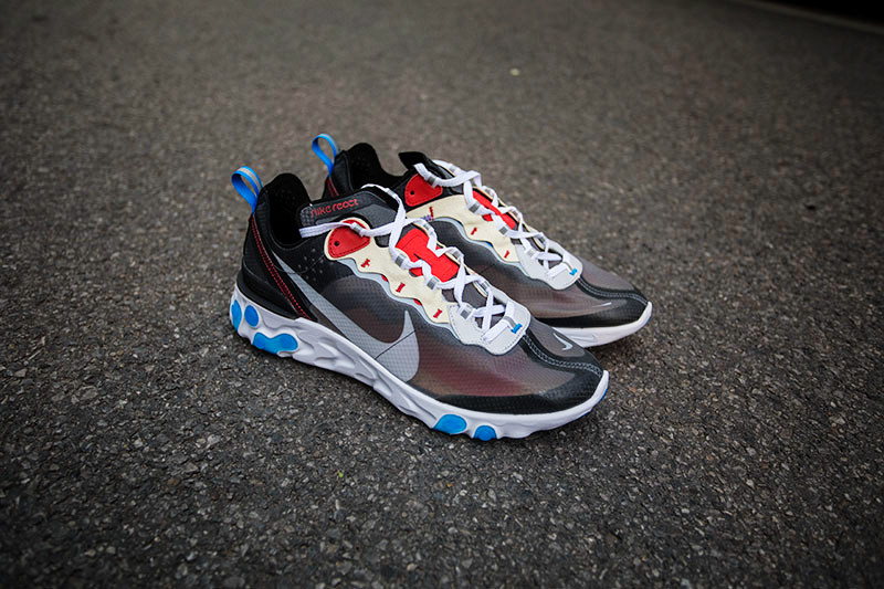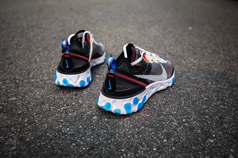 除此之外,小编也拿到了最近发售的红蓝点缀配色 React Element 87!同样具备气场强烈的自身属性!