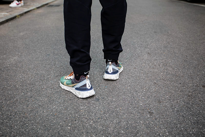 在被称为二级市场 “黑马色” 的白色款没发售之前,React Element 87 人气方面完全是由时装周亮相的 UNDERCOVER 联名系列带起来的!4 双配色自打曝光开始就拥有极高的询问度以及关注度!