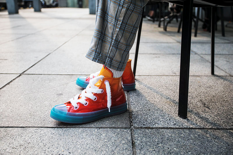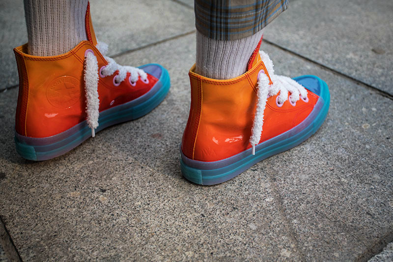 如此骚气的渐变色漆皮让小编的少女心爆棚!作为国内不发售的款式,撞鞋几率可以说很低了。谁规定全身上下不能超过 3 种颜色? 颜色再多也能配这么好看,Jonathan 这一波操作我是服的!