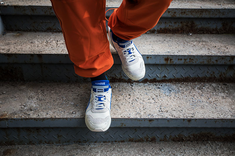 ADER 拿手的解构设计体现在双层构造的鞋舌,里层鞋舌上刺绣有 “TONGUE” 字样,和 OFF-WHITE 的 “说明解释” 风格字体有着异曲同工之妙。