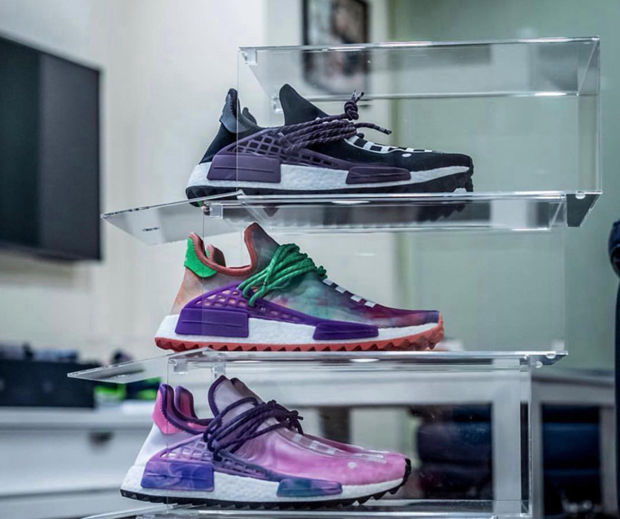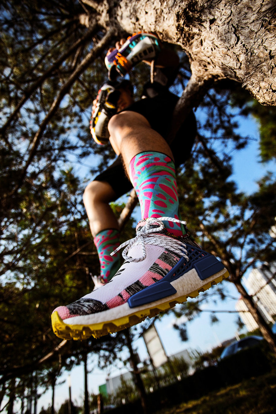 这三款非洲主题菲董 NMD 都以彩色条纹装扮,其上有白色方框中间填充字体。从设计上看其实颇具新意,但夸张的色彩与独特的外形相结合,就不是所有老铁都能轻松驾驭的了,这恐怕也是它 “倒闭” 的原因之一。