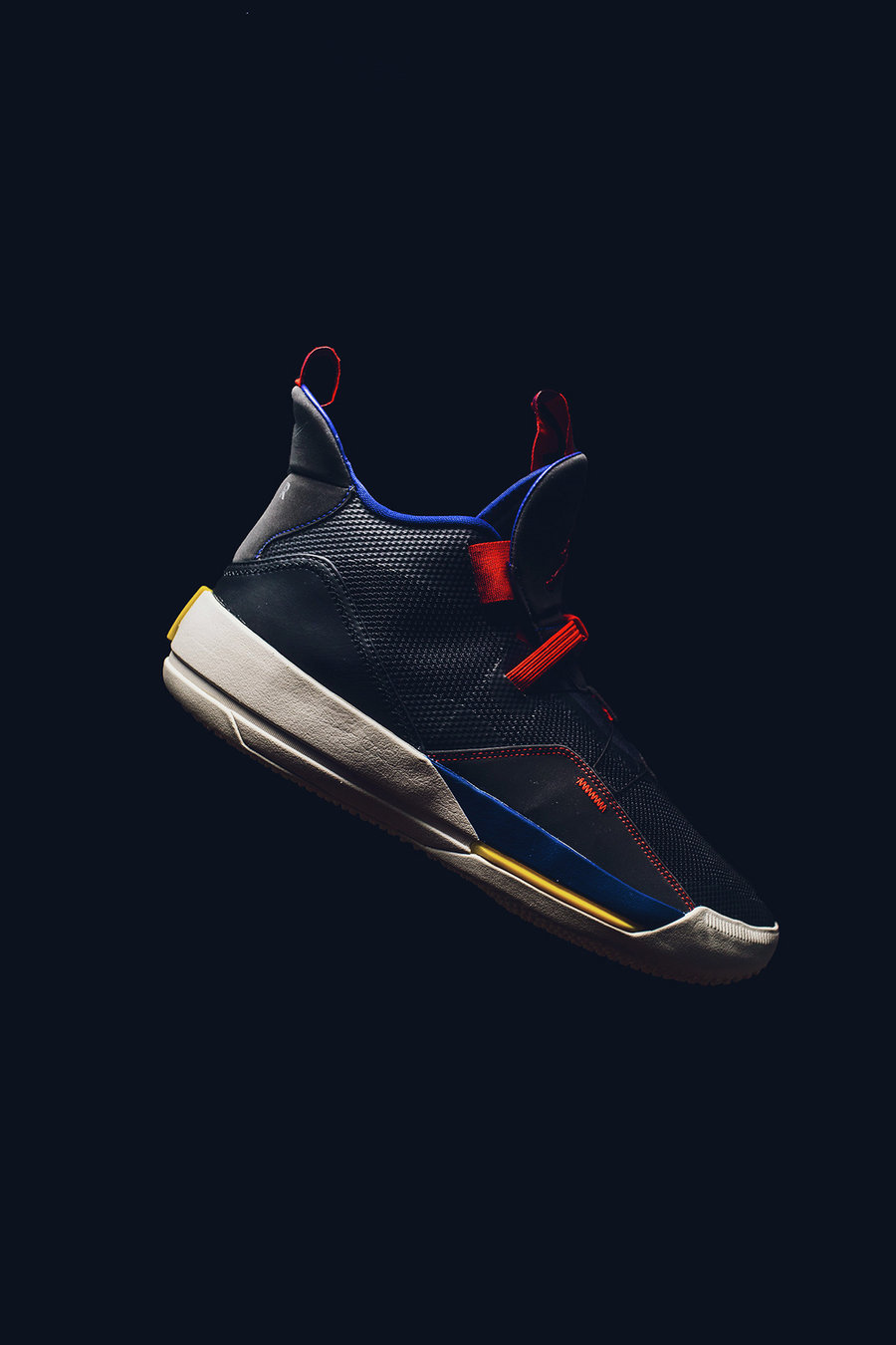 Jordan Brand 通过对宇航服 “实用至上” 的设计理念进行研究,将 Air Jordan 33 的每一个零件打造的不仅对运动员打球有帮助,也完美符合 Jordan 的飞翔美学。