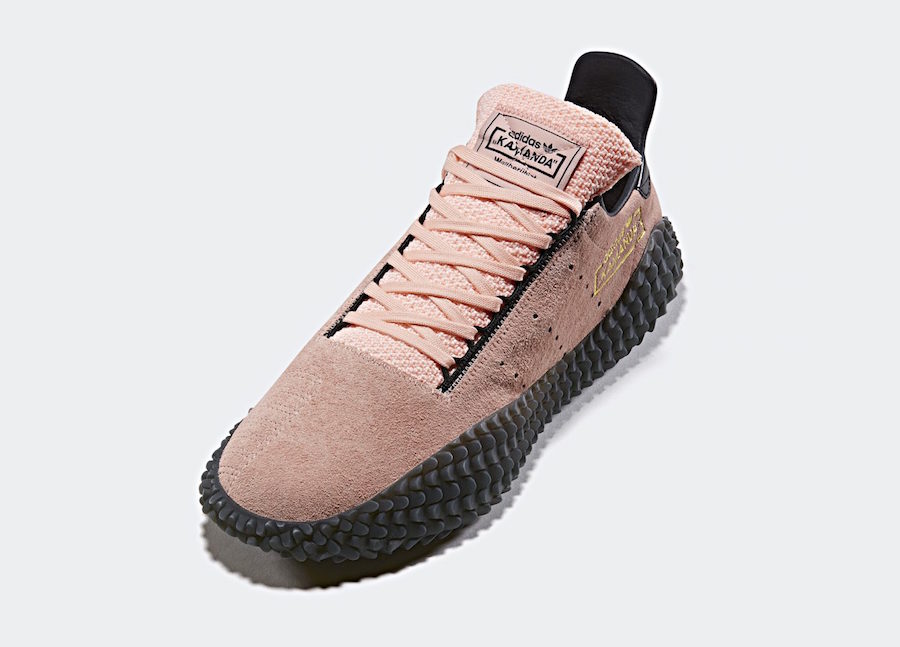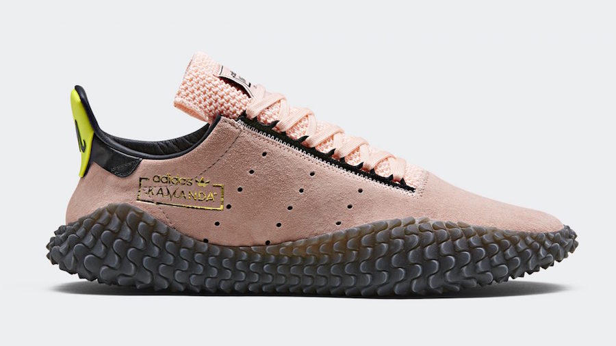 全新鞋款 Kamanda 为原型,鞋面由麂皮打造,以魔人布欧皮肤的粉色作为主调,搭配紫色鞋带及黄色点缀。在后跟则印有布欧标志性的亮黄色 “M” Logo,与角色气质完美重合。