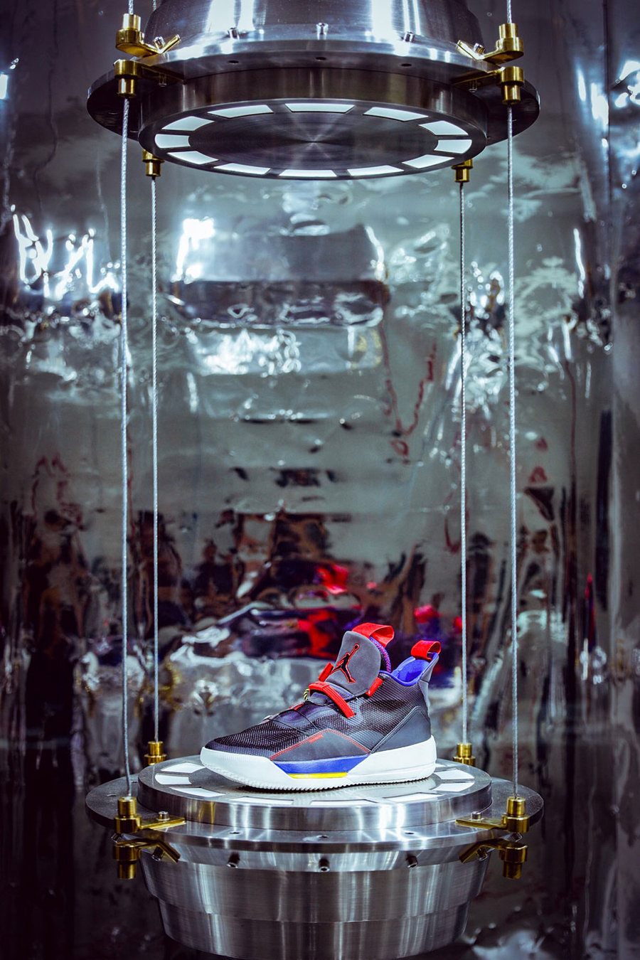 Air Jordan 33 颠覆性的造型与之前的 Jordan 正代大不相同,整体造型展现出极其夸张的未来科技感,而鞋身的细节又带有几分机能风格。