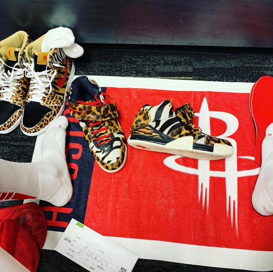 再加上詹皇新小弟 Kyle Kuzma,不但人长得帅气,穿衣打扮也独有一套自己的风格,上赛季还被聘选为 “NBA 年度着装最佳新人”,湖人的另一位球员 Lance Stephenson 更是在赛季初就上脚多款定制 Air Jordan。