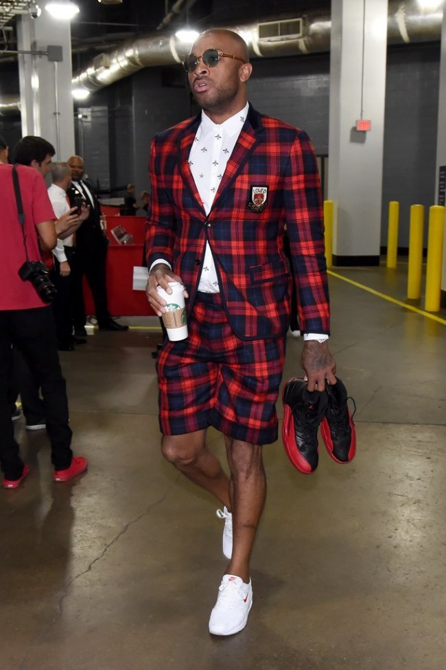 除此之外,上赛季知名篮球杂志《SLAM》以赛场下的着装为主题,被评选为 “NBA 年度最佳着装第一阵容” 的 Russell Westbrook、Jimmy Butler、Nick Young 都不容小视。
