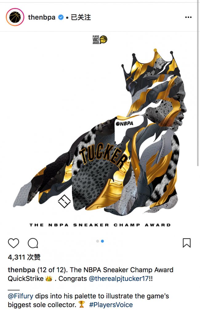 上赛季 NBPA(National Basketball Players Association,美国国家篮球协会球员工会)通过投票给 PJ Tucker 授予了 2017-18 赛季 Sneaker Champ 称号。
