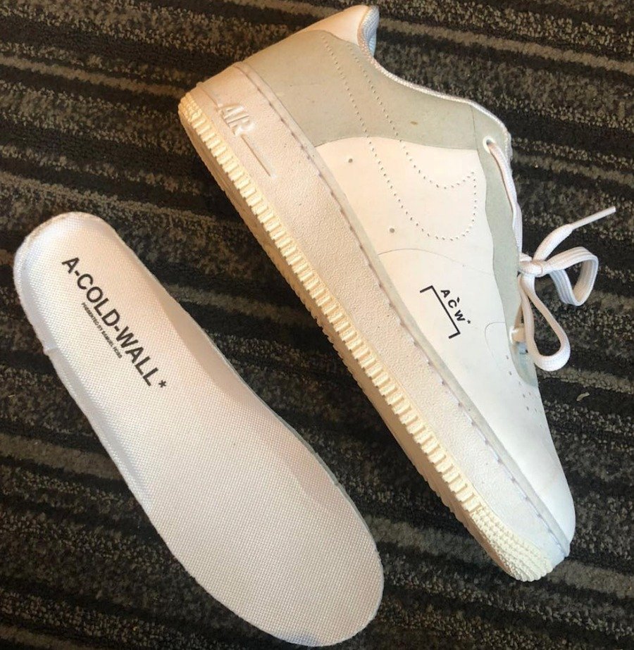 英国新晋时尚品牌 A-COLD-WALL* 与 Nike 合作的全新联名 Air Force 1 刚刚在昨天曝光。今天又有一款神秘的联名跑鞋局部图曝光。