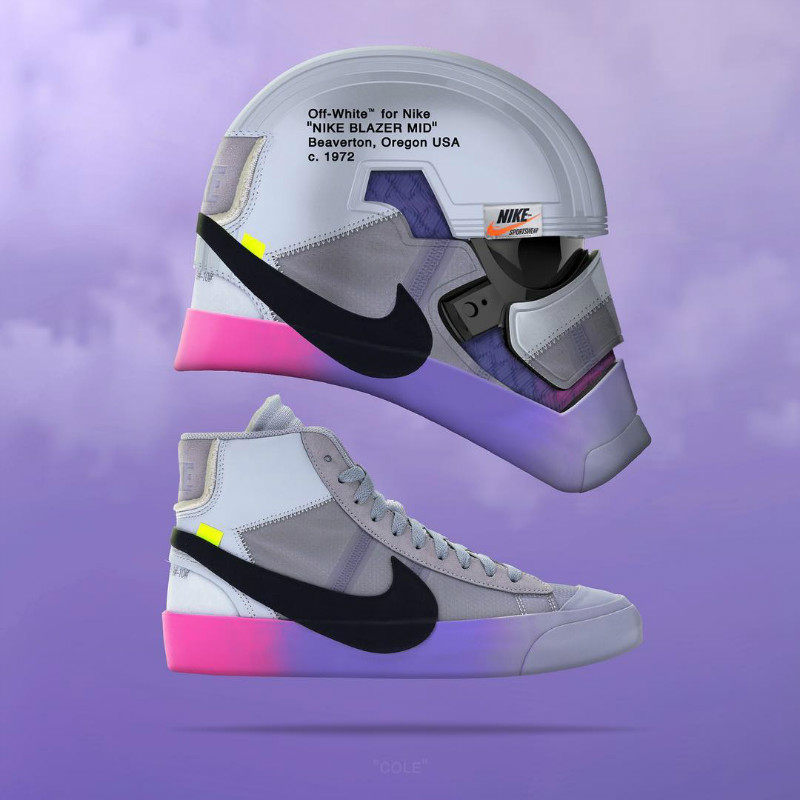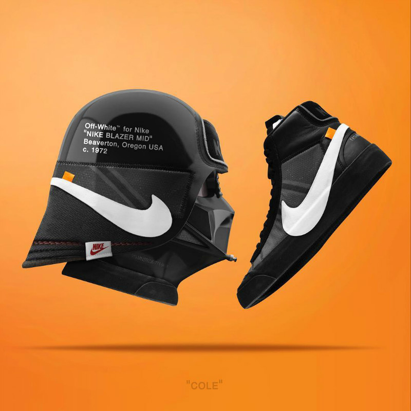 不过还好,我们熟悉的球鞋插画师 Jeff Cole 率先帮我们完成了这一脑洞大开的设想!