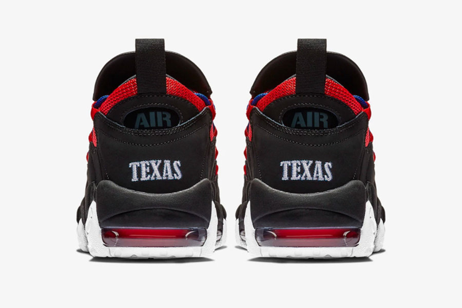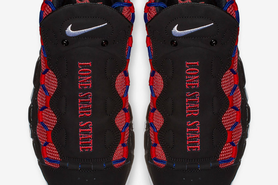 新配色不断的大气垫球鞋 Nike Air More Money 又迎来了一款全新德州主题 “Lone Star State” 配色。 以黑色为主色调,红蓝两色点缀灵感来自州旗的配色。鞋面及后跟分别带有 “Lone Star State” 和 “TEXAS” 刺绣字样,字体风格正如西部片中常见的一样,极具特色。 将于 11 月发售,售价 $160 美元,国内发售详情我们将持续关注并第一时间报道。