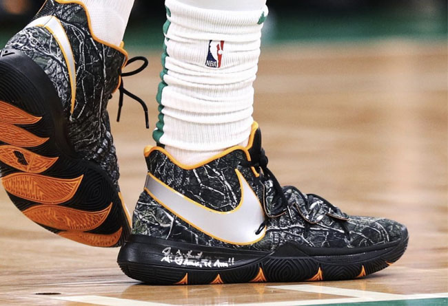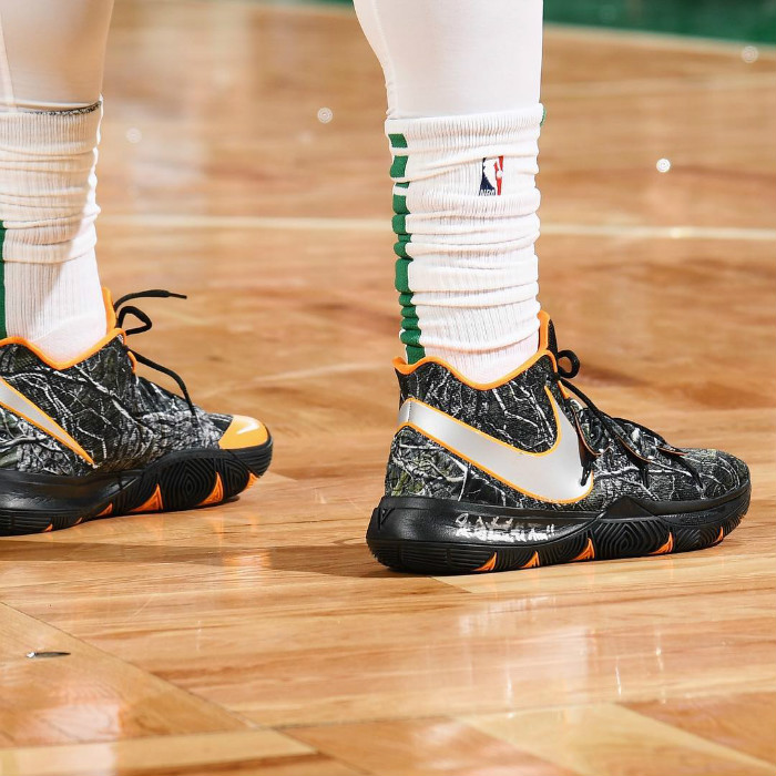 欧文最新战靴 Kyrie 5 迎来正式发布,在今早波士顿凯尔特人对阵密尔沃基雄鹿的比赛中,上脚并非是官方的首发配色,而是同 Travis “Taco” Bennett 合作的 Nike Kyrie 5 “Taco” PE,这也是 Kyrie 5首次在 NBA 赛场亮相。