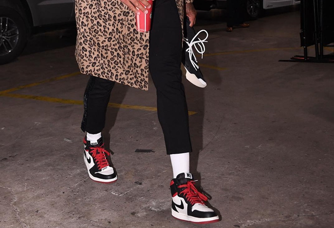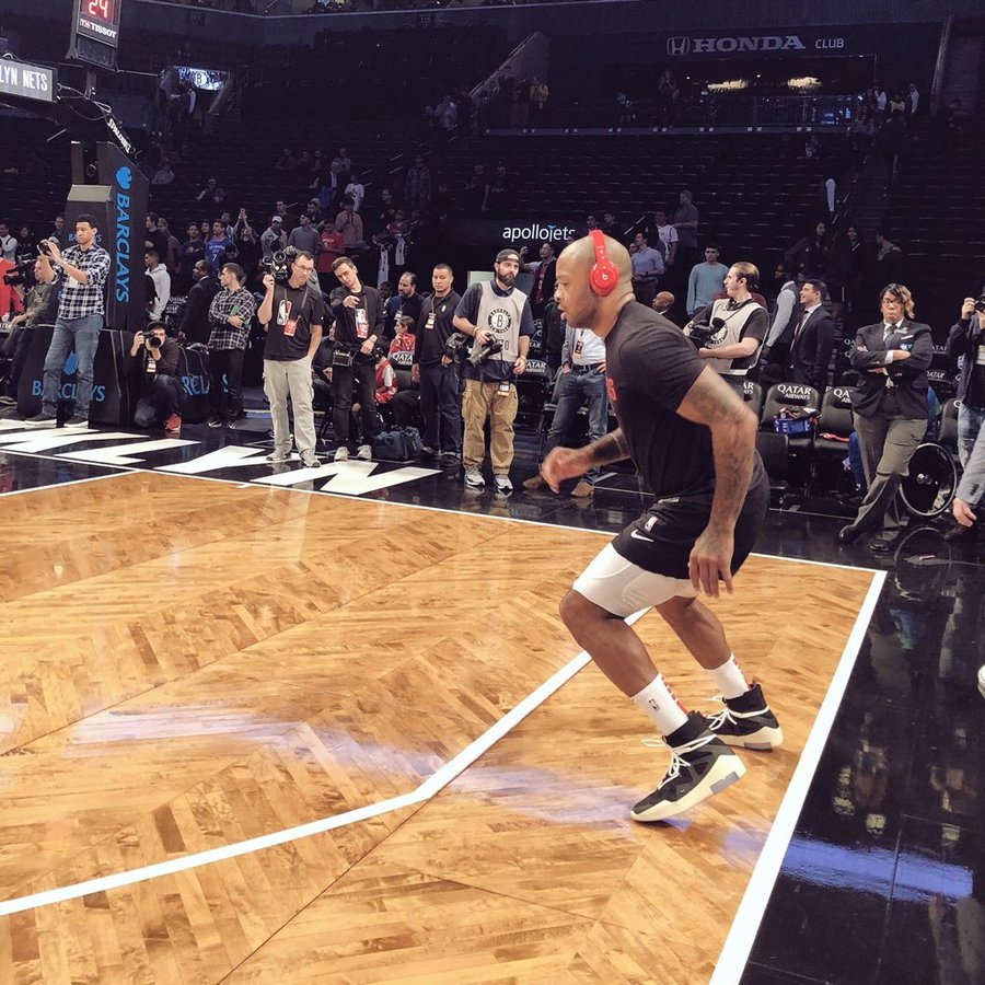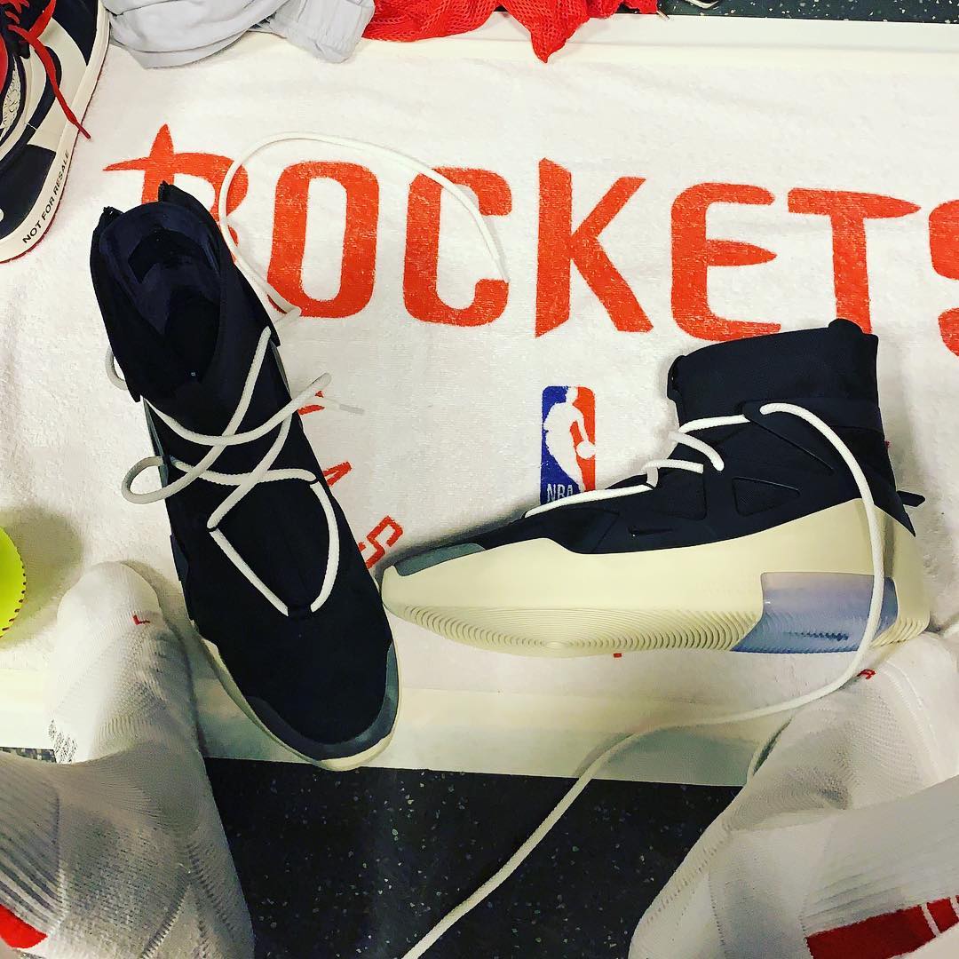 今天鞋王 P.J.塔克又有新操作,到达球场时上脚尚未发售的 “禁止转卖” AJ1。更吸引人眼球的是他手上提了一双 Fear Of God 联名新鞋 Nike Air FOG!让人不禁期待他是否会在正式比赛中上脚?