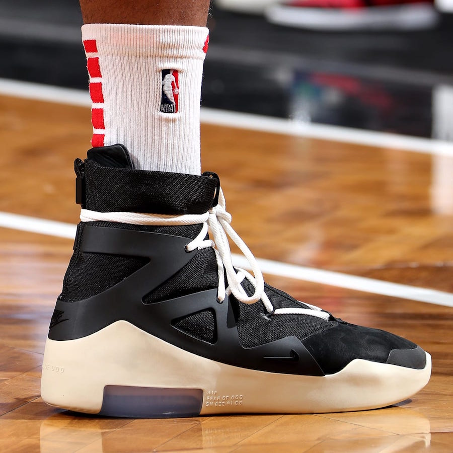 果不其然,鞋王塔克真的在比赛中上脚了 Nike Air FOG!虽然不是专为篮球运动打造的鞋款,但鞋面的支撑框架搭配中底上翻依然能提供一定的稳定性,同时后跟的气垫陪着带来足够缓震。