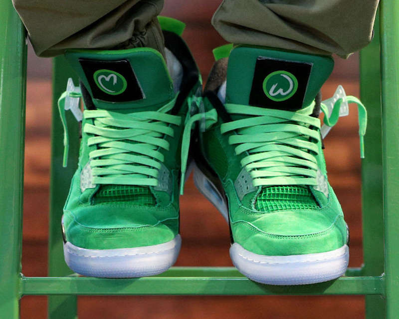 这双 Air Jordan 4 “Wahlburgers” 鞋身采用绿色牛巴革打造,在鞋舌处的 Jumpman 则替换为印有 Wahlberg 的个人 Logo!半透明与绿色泼墨结合的设计更是彰显 1 of 1 身份。