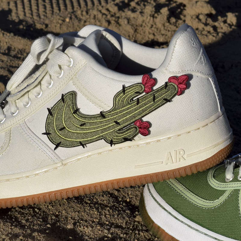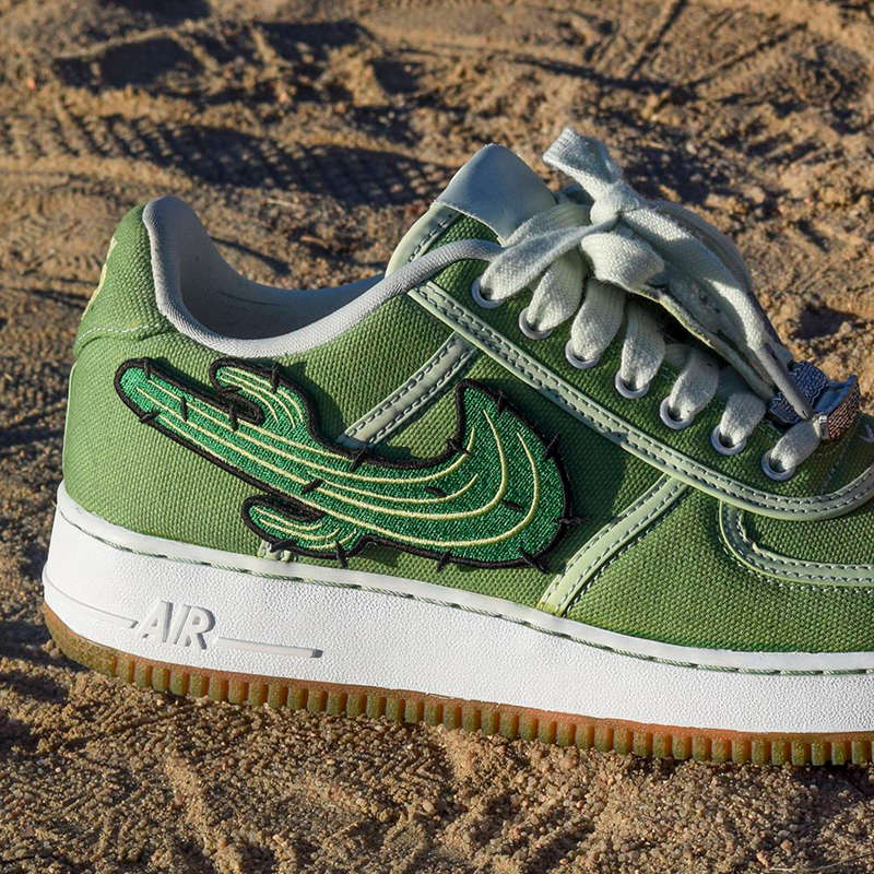 正是出于这一点,三名才华横溢的球鞋定制师 Kevin Krib、Dizz Gavins 和 Herby Santana,联手客制了一双仙人掌元素的 Travis Scott x Air Force 1。