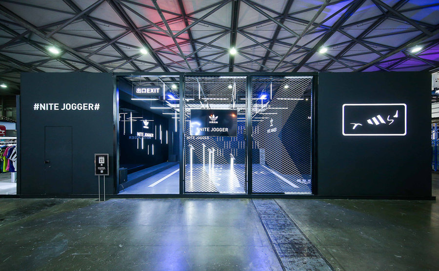 与 MAKERLAB 的复古感、INFINI CUBE 的科技锋芒,不同的是本次展会现场 adidas Originals 还带来了尚未发售的多双全新鞋款,其中的主角便是全球首度亮相的 NITE JOGGER BOOST 。