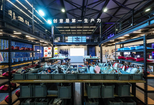 在第一层空间的 “装配车间”区域内,热爱原创的你将得以体验球鞋定制服务。而在位于二层的“洗衣坊”中,消费者能以同样的方式体验服饰和包袋的定制服务。