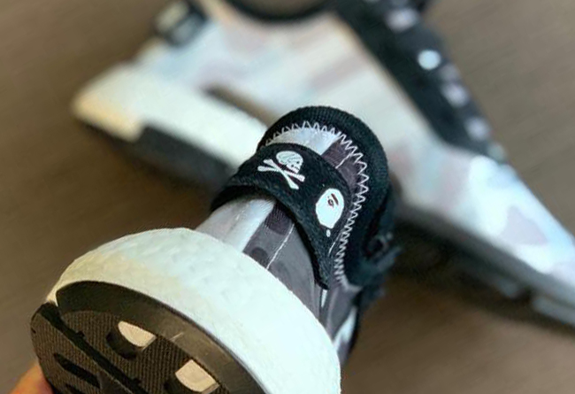此次合作在设计上颇为大胆,除了将 BAPE 最经典的迷彩元素与 NBHD 骷髅头暗花完美结合并融入整个鞋面之外,最大的亮点在于整体采用黑白阴阳的设计呈现。
