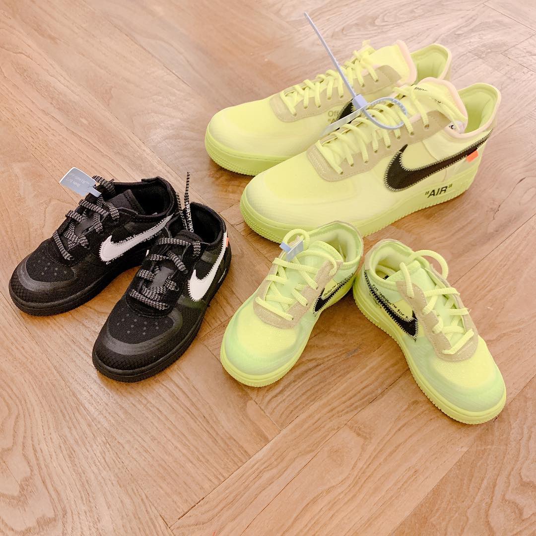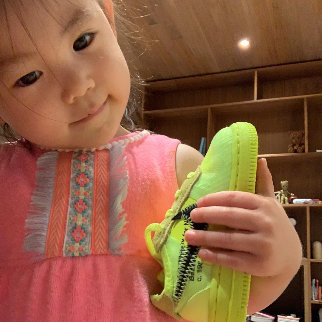 而陈冠希在很早之前就晒出了宝贝女儿 Alaia 抱着这双 OFF-WHITE x Air Force 1 童鞋的照片,看起来非常可爱。