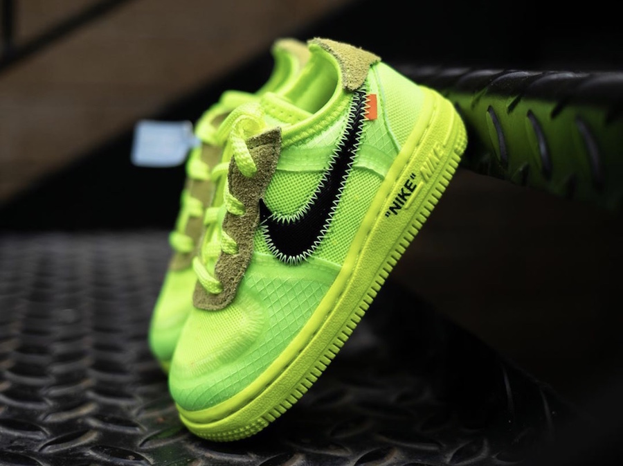 在设计上童鞋保留了 OFF-WHITE x Air Force 1 的风格,配色也是配合今年的新品带来荧光绿与黑白两双。但由于鞋子太小的缘故,整双鞋上去掉了不少设计元素,但鞋面材质与结构风格依旧,即便不穿买来当玩具装饰也是非常不错的选择!