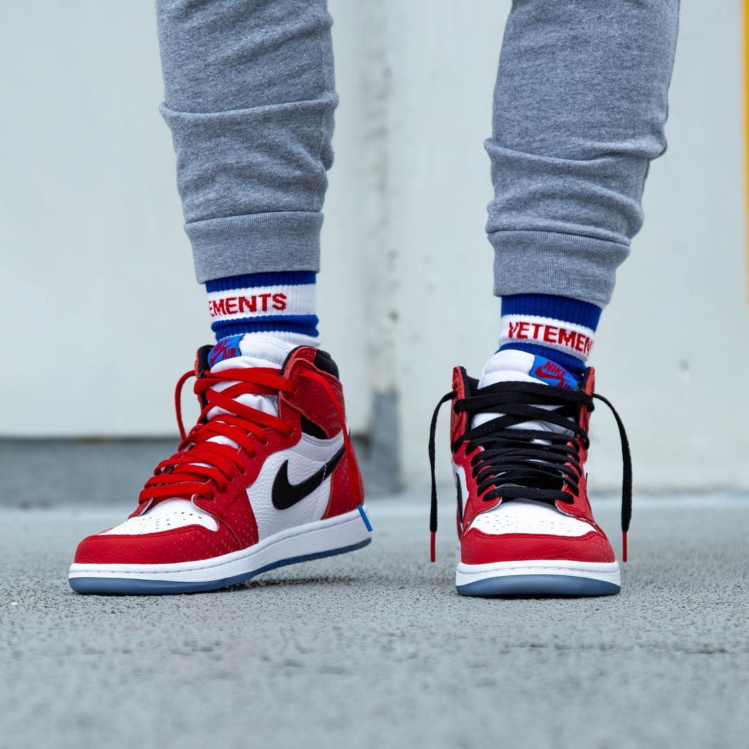 2018 年球鞋圈最轰动的球鞋毫无疑问当属 Air Jordan 1,从 “倒闭蓝”、“渣渣灰” 相继从低于原价到起飞,“黑红脚趾”、“黑紫脚趾” 的全民抢购热潮,再到 “禁止转卖” 和 “Union” 掀起前所未有的火爆话题,最后再以这双酷似 “芝加哥” 的 “蜘蛛侠” 作为 2018 年度的收官之作。