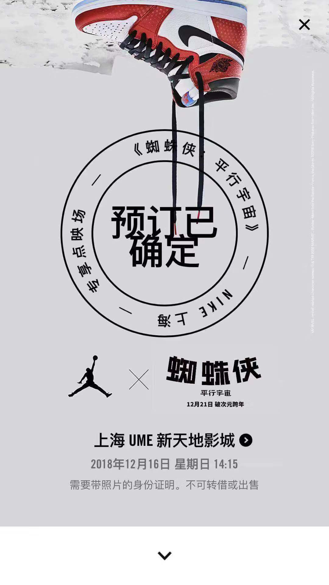 值得一提的是,SNKRS 昨日还放出了 Air Jordan 1 “蜘蛛侠” 的另类专属购买资格,收到资格的球鞋玩家将会前往北京、上海等地的电影院,参加 《蜘蛛侠:平行宇宙》 的专享点映场,小编猜测会不会有特殊鞋盒版本发售呢?
